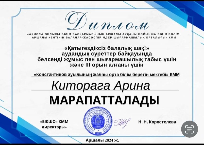 Коммунальное государственное учреждение «Общеобразовательная школа села Константиновка отдела образования по Аршалынскому району управления образования Акмолинской области»