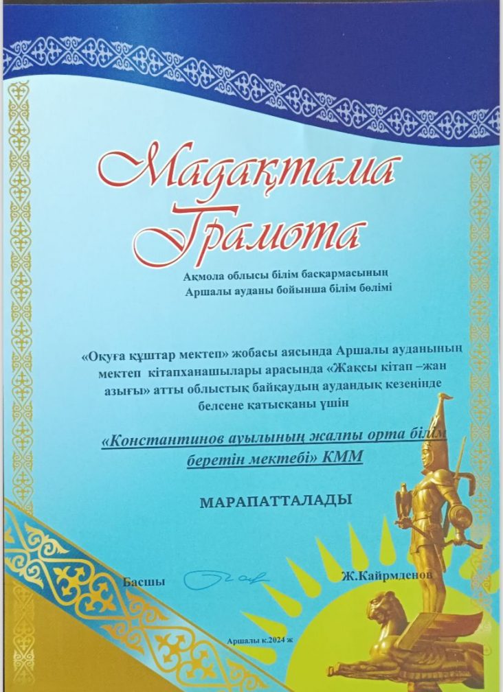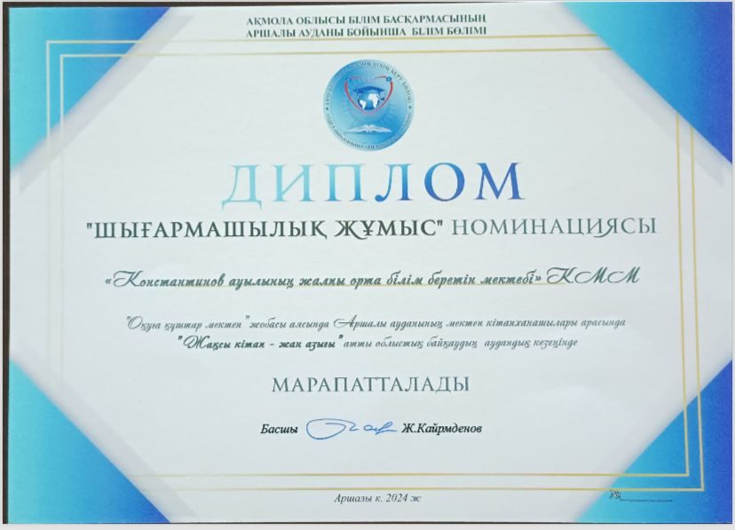 Коммунальное государственное учреждение «Общеобразовательная школа села Константиновка отдела образования по Аршалынскому району управления образования Акмолинской области»