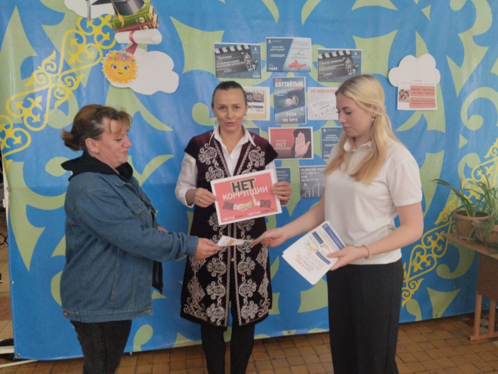 🔍 Іс-шараға қатысушылар өтіп бара жатқан адамдарға ақпараттық парақшалар таратып, сыбайлас жемқорлық қоғам дамуының тежегіші екенін еске салды.
