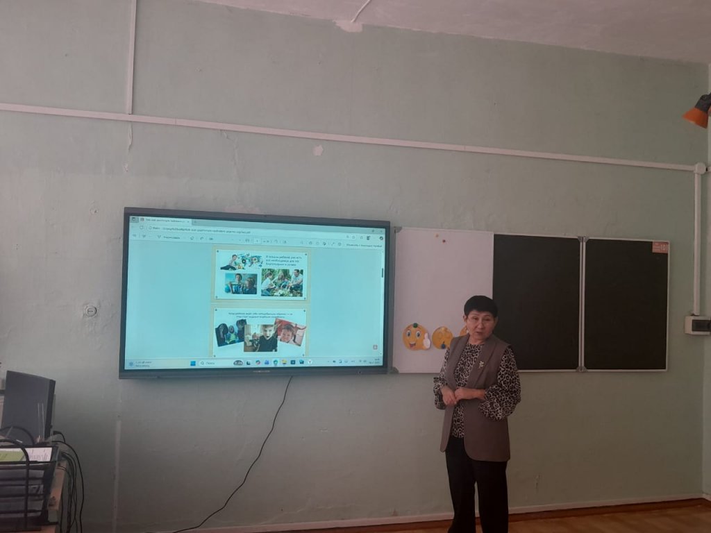 Сынып жетекшісі Г.Б. Нұрумова мен мектеп психологы Т. Б. ата-аналармен әңгіме , қызықты тренингтер өткізді , ата-аналардың назарына танымдық презентация мен бейнеролик ұсынды. Кездесу жоғары деңгейде өтті , ата-аналар белсенді қатысып, педагогтарға алғыстарын білдіріп, жақсы пікірлер қалдырды .
